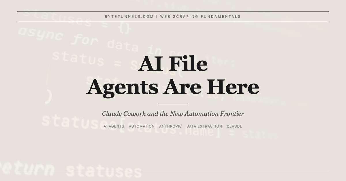 This post covers how file-based AI agents complement web scraping workflows, what Cowork specifically brings to the table, and how to build your own file processing pipelines.