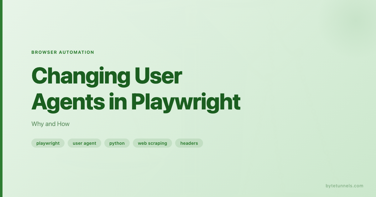 Changing the user agent in Playwright is straightforward, but doing it correctly requires attention to consistency. Set the user agent at the context level using browser.new_context(user_agent=...) so that both HTTP headers and JavaScript properties stay in sync. Match your user agent to the actual browser engine you are running — Chrome user agents for Chromium, Firefox user agents for Firefox. Keep version numbers current with real stable releases. When you need device emulation, use p.devices["..."] to get a fully consistent profile with a single line of code. And do not forget the supporting headers like Sec-CH-UA and Accept-Language that detection systems cross-reference against your user-agent string. At a lower level, TLS fingerprinting can also expose your client regardless of which headers you set.