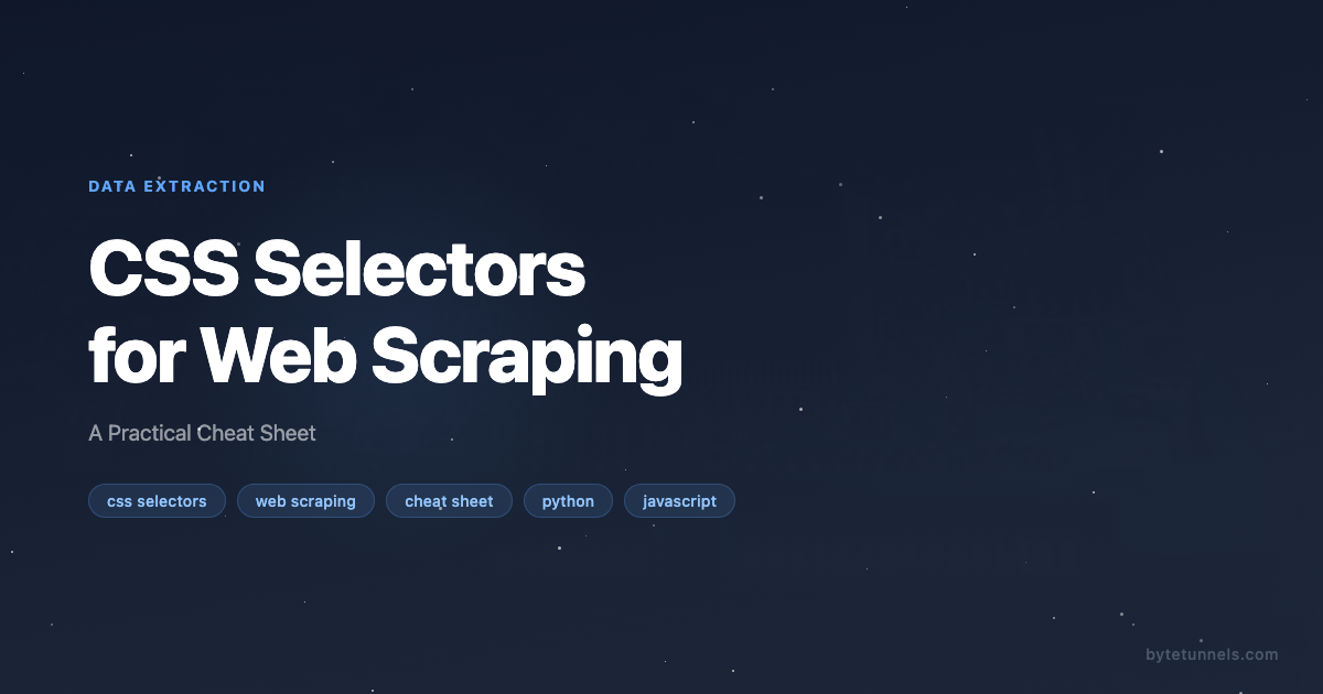 CSS selectors are the most intuitive way to target elements when scraping web pages. Unlike XPath, which reads like a file system path, CSS selectors use the same syntax you already know from stylesheets. Every browser, every scraping library, and every automation framework supports them. Whether you are using BeautifulSoup in Python or Playwright in JavaScript, the selector string itself stays the same – only the API call around it changes. This post is a practical cheat sheet covering every CSS selector pattern you will actually use in scraping work, with real code examples and a reference table you can bookmark.