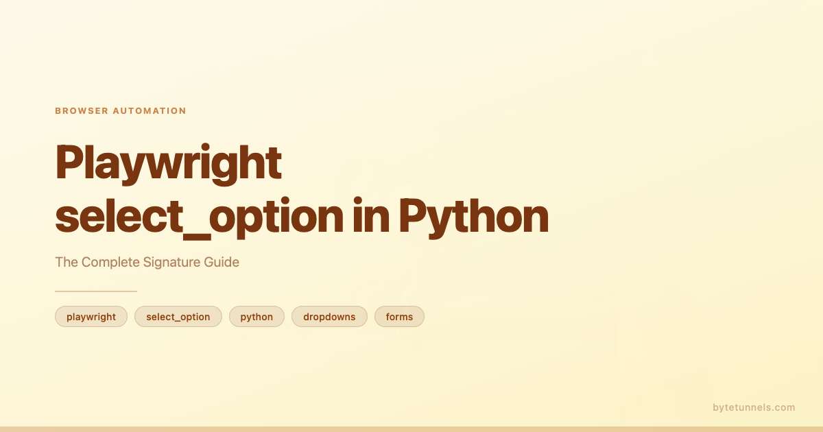 Dropdown menus built with <select> elements are everywhere – registration forms, checkout flows, filter panels, admin dashboards. If you are coming from the Puppeteer side, the equivalent API is covered in Puppeteer’s select dropdown handling. Every time you automate a form or scrape data behind one, you need a reliable way to choose an option programmatically. Playwright’s select_option method handles this in a single call, but its signature is more flexible than most developers realize. It supports selection by value, by visible label, by index, by a combination of those, and even by multiple values at once. This guide walks through the entire API surface with working Python examples so you never have to guess which parameter to reach for.