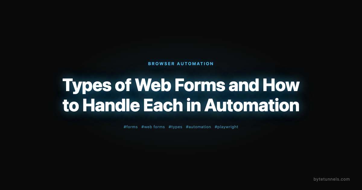 Web forms come in many shapes, and each type requires a different automation strategy. For a broader overview of form automation techniques, see our complete guide to automating web form filling. A simple search box and a multi-step checkout wizard may both be <form> elements under the hood, but automating them calls for completely different approaches. If you write one generic “fill and submit” script and expect it to work everywhere, you will spend more time debugging than scraping. This post walks through the major types of web forms you will encounter, explains what makes each one tricky, and shows how to handle them with Playwright in Python.